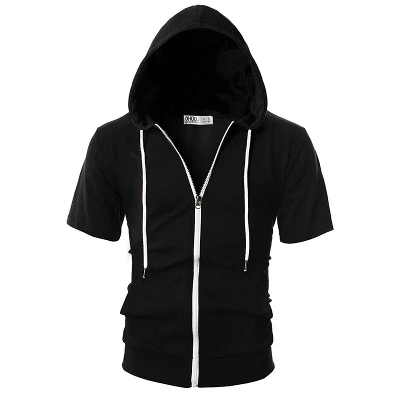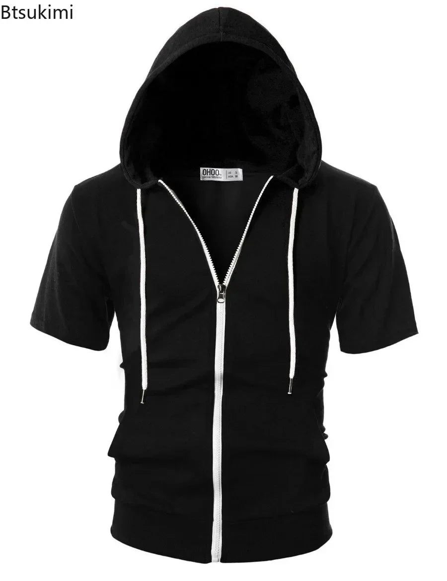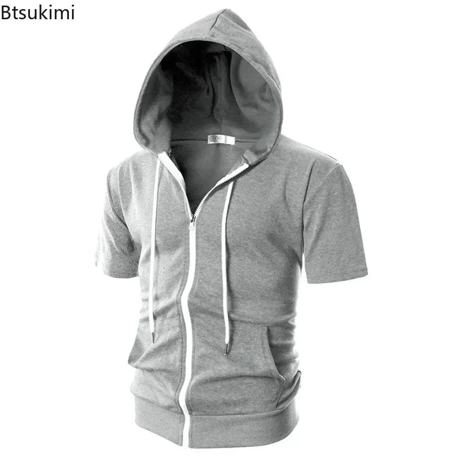Upgrade your activewear with this men’s 2025 casual short-sleeve zip hoodie, designed for comfort and style. Its slim fit and solid color make it perfect for outdoor sports and everyday wear. This lightweight sweatshirt jacket combines breathable fabric with modern functionality for versatile menswear.