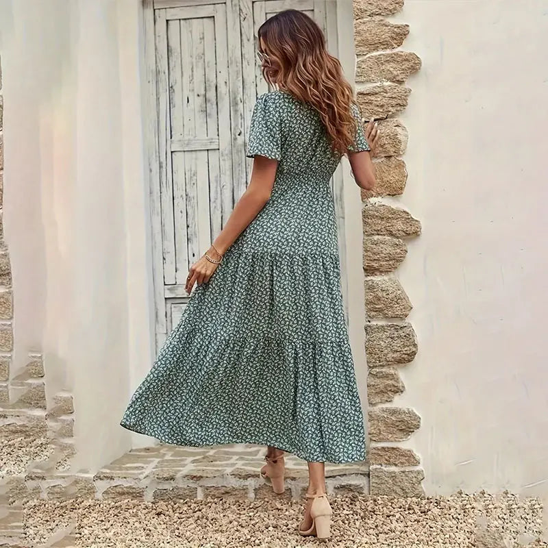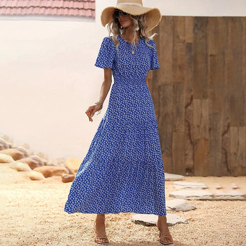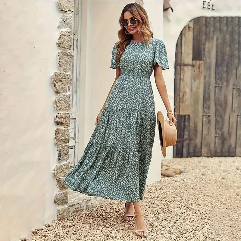 Step into spring and summer with this Women’s Floral Tiered Midi Dress, featuring short sleeves and a flattering elastic waist for all-day comfort. The pleated design and backless detail add a playful, casual vibe perfect for sunny days. Lightweight and flowy, it’s your go-to dress for effortless seasonal style.